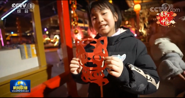 在節目畫面中,璀璨耀眼的花燈將荊州方特裝點得年味十足,園內的新春廟會集市上更是歡聲笑語不斷,呈現出一片祥和喜慶的景象。畫版畫、剪紙花、畫糖畫等傳統新春民俗活動吸引了眾多游客參與,游客們紛紛向央視記者展示著自己的手工剪紙作品,喜悅之情溢于言表。